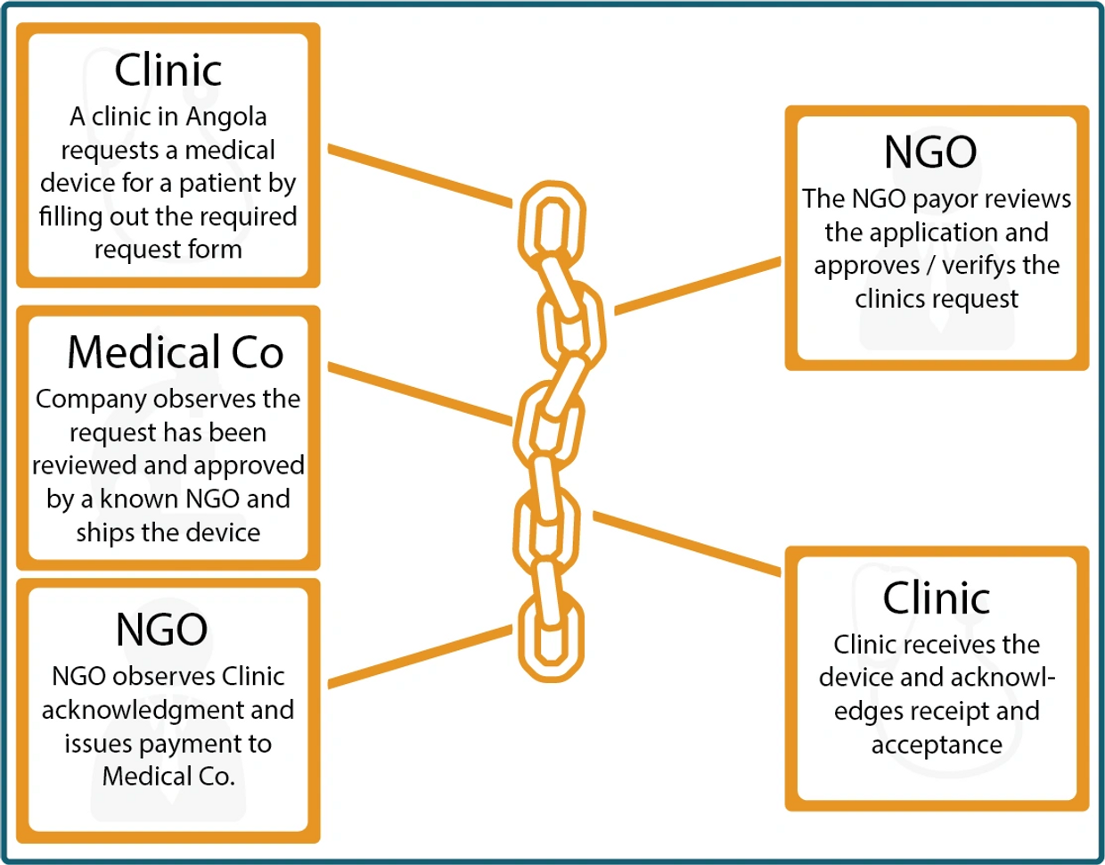 Because the clinic added both the NGO and the medical device company as signatories the medical device company can now see that a request has been made and that the NGO has approved the request. They are now confident in shipping out the required items.